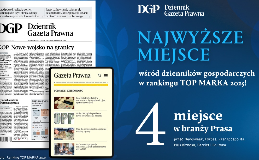 Dziennik Gazeta Prawna (DGP) już po raz czwarty z rzędu zajął czwartą lokatę w prestiżowym rankingu Top Marka w kategorii „prasa”. Ranking ten stanowi kompleksowe badanie mierzące siłę i jakość przekazu medialnego najważniejszych marek w Polsce.